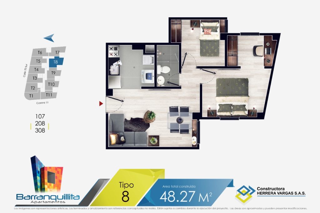 El proyecto Apartamentos Barranquillita se desarrolla en el sector de Barranquillita – Santa Librada, una ubicación estratégica, cercana al portal de Usme y a la Avenida Caracas. Este conjunto residencial está pensado para ofrecer vivienda de interés social (VIS), combinando funcionalidad, confort y espacios comunes que elevan la calidad de vida de sus residentes. En total, el proyecto cuenta con 29 unidades de vivienda. ENTREGADO